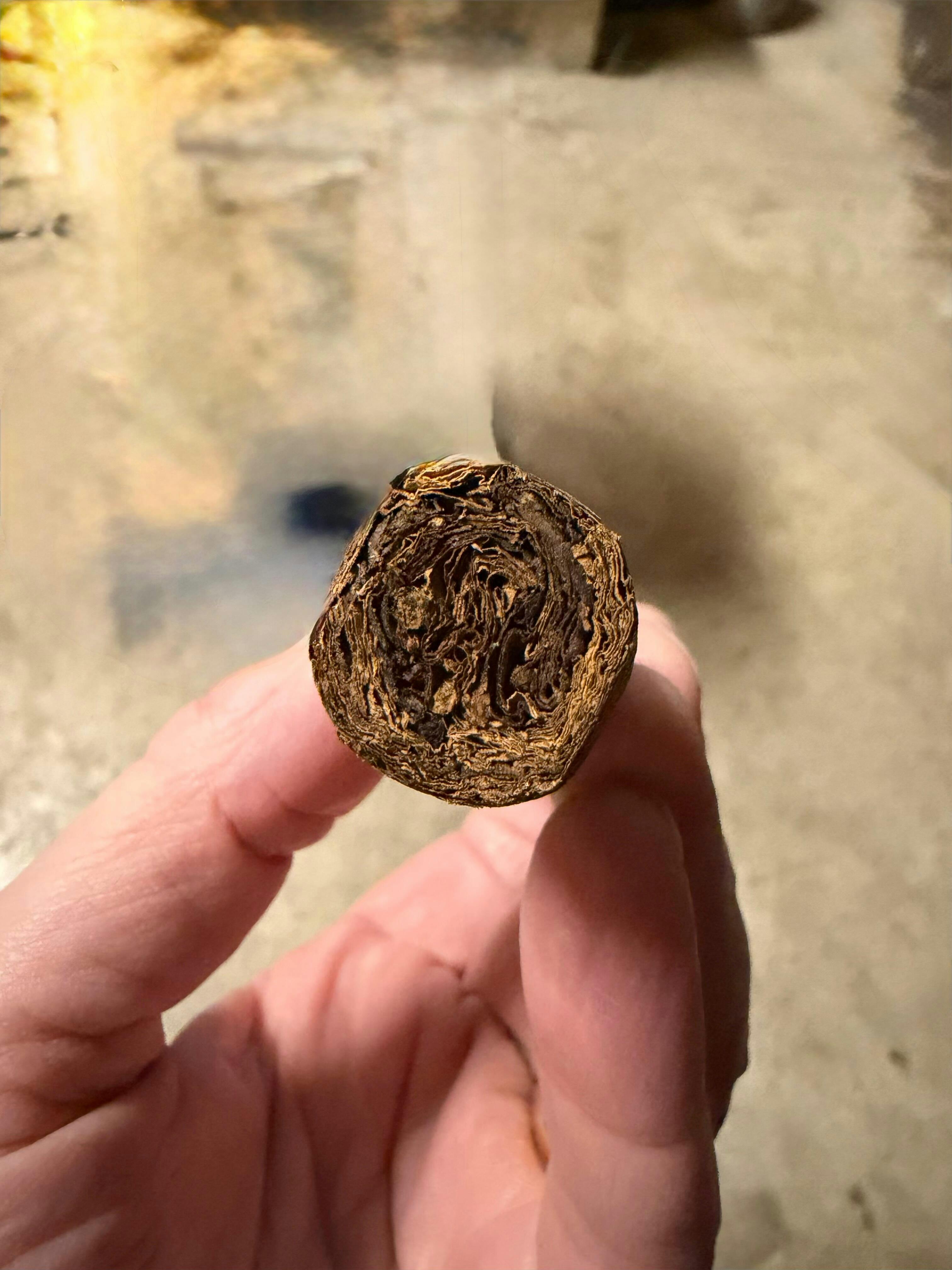 The cigar opens with roasted nuts and charred oak, grounded by natural tobacco sweetness. The first third gives you the foundation: earth, pepper, and chocolate. In the second third, darker woods, espresso, and baking spice take over while the retrohale sharpens into warm pepper. The final third becomes richer, heavier, and deeper, with leather and cocoa dominating the close.